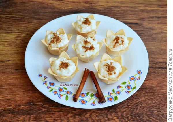 Молоко посолить, добавить ванилин и сахар, довести до кипения. Добавить тщательно промытый рис и половину масла, еще раз довести до кипения и варить на слабом огне 10 минут. Добавить цедру лимона, размешать и варить на слабом огне еще 15 минут до готовности риса (периодически помешивать). Затем огонь выключить, завернуть кастрюлю в полотенце и еще 15 минут дать рису дойти. Добавить остальное масло, перемешать и можно подавать. При желании кашу можно дополнительно пробить погружным блендером. Варианты подачи разные: можно выкладывать в креманки или стаканы и добавить ягоды (по вкусу), миндаль или любые другие орехи (по вкусу). А можно, как у меня в этот раз, выложить в красивые тарталетки и сверху посыпать корицей, но тогда сразу нужно подавать к столу, потому что если тарталетки вафельные, то быстро станут мягким (если из песочного теста — можно не торопиться.