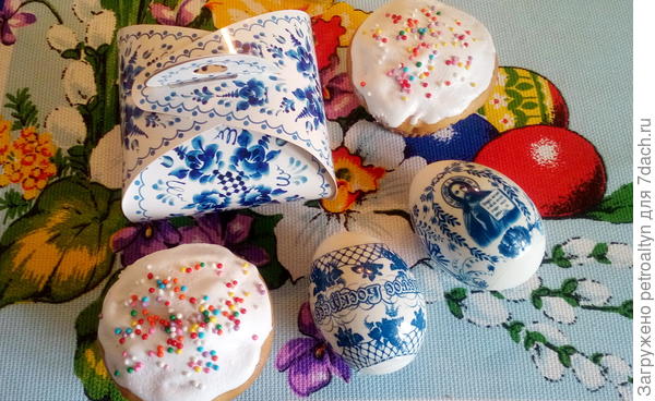 Куличами угостили. Яички с мужем украсили. Пасочку творожную сама сделала
