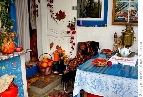 У соседки по даче устроили вечеринку, тыковки все принарядились