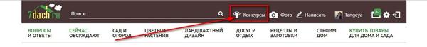 Шаг 1. Наверху страницы у нас есть коричневая линеечка. На ней — кнопка — Конкурсы