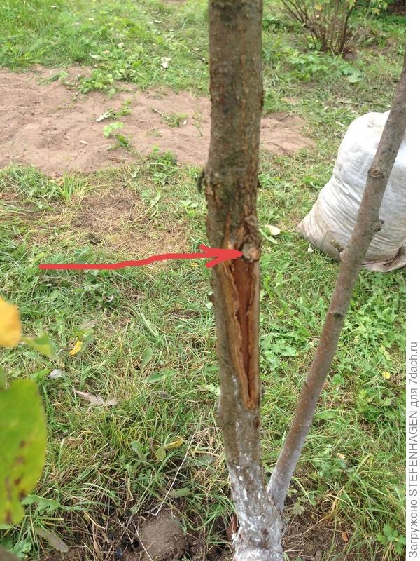 Рана на стволе уже затягивается. Особо не усердствовать, но края зачистить и так же обработать.