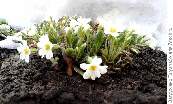 Из-под снега вышла примула.