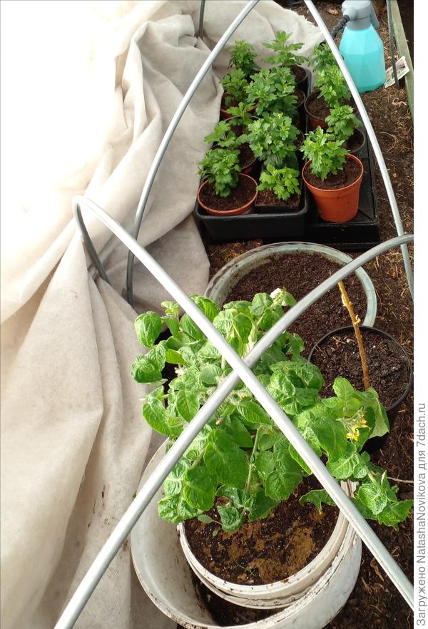 рассаду всех пасленовых занесла в дом, в теплице под укрывным оставила рассаду луков и цветы, зато спится спокойно