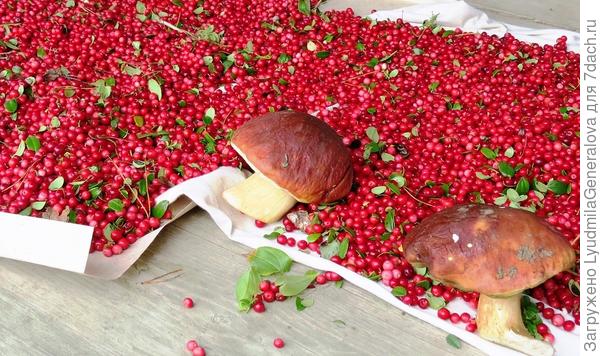 Вот брусничник — ягод… Не даст разогнуться. Бери и бери, не ленись. А если увеличить фото, то… см. ниже