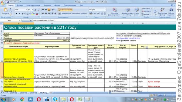 Доброго дня, Ольга! Пришлите и мне, пожалуйста, вашу табличку. Я тоже пытаюсь упорядочить свои покупки семян и наблюдения за растениями в дальнейшем, но пока не совсем определилась с необходимой структурой таблицы — вроде бы и такой столбик нужен, и такой… Надеюсь, что ваш опыт мне поможет.