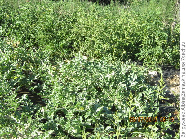 Пространство (честнее — почти всё) между грядок закрыл полосами старого линолеума, — земля всегда влажная, что нравится «тамошним» жителям, а между деревов-кустов и там, где не хватило линолеума, — естественное залужение выполняет не токмо роль мульчи, но и мягкого ковра. Короче, «ляпота», но всё равно гложет мечта о соломе… Честь имею, ded68лет.