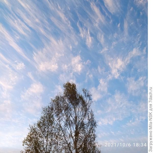 У нас сегодня выдался первый солнечный и относительно теплый (днём было +9) денек за последние три недели. Ездила на дачу после работы и увидела на небе вот такое чудо! Квадрат Малевича отдыхает!