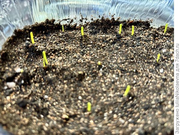 Сеяла 8 марта. Сегодня вылез Халцедон в пятилитровой баклажке. И вылез весь Эксибишен в литровых контейнерах, что под заказ сеяла. Мой эксибишен в пятилитровой баклажке не взошёл ещё 😜