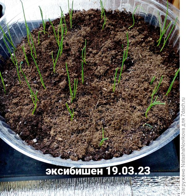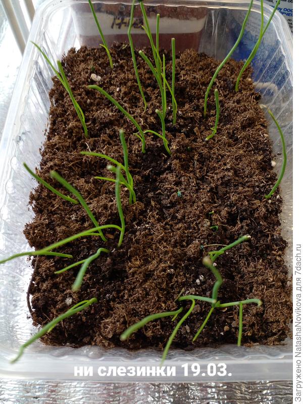 Через несколько дней стала перемещать проклюнувшиеся семена в грунт – 10, 11 и 12 марта. Не зафиксировала, когда лук стал прорастать, на сегодня – уже «колосится» ✅