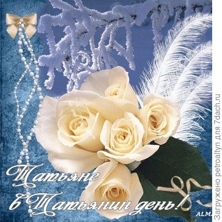 Во первых строках письма, конечно, поздравляю наших замечательных Татьян! Вы украшение нашего сайта! да что сайта? Всей жизни! Вот правда: не встречала ни одной Татьяны злой или сварливой или еще какой «редиски». Татьяны — нежные, добрые, но в то же время сильные! Счастья вам, девочки!