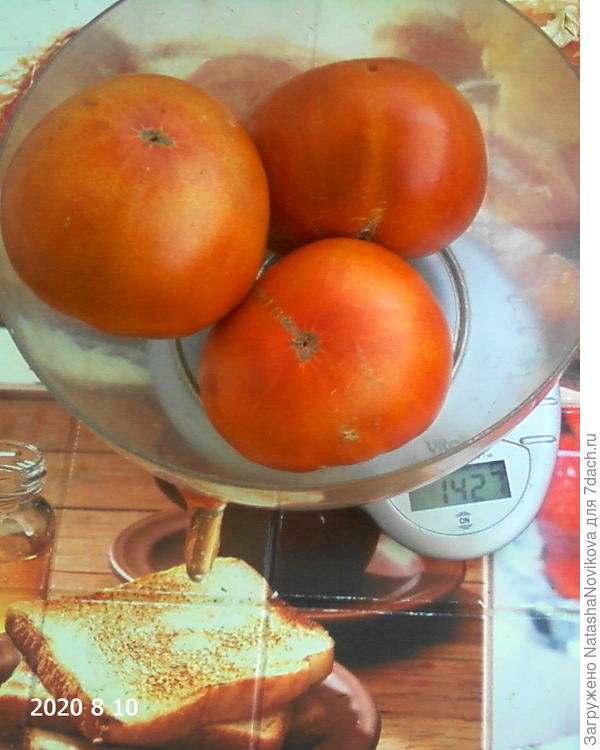 Второй сорт судя по названию, должен был быть темного цвета, что впрочем где то совпало. По вкусу очень достойный насыщенный, чисто томатный вкус, сочный, ароматный и в отличие от «Ромовой бабы», упругий, лежкий, транспортабельный. Весьма устойчив к болезням и почти до заморозков дает плоды. Очень плодовитый сорт!