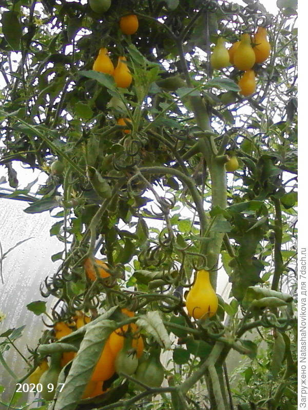 А я, девочки, не нашла Медовую каплю и купила Грушку медовую. И выросло диво… Море очень мелких «лампочек», красиво, но вкус кисловатый, а в засолке сразу лопаются. А понравились мне нынче из новых Бизон оранжевый.