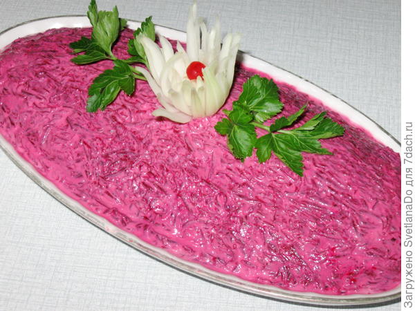 ИнгредиентыСельдь (филе) — 300-350 гЯйца вареные — 3 шт.Свекла вареная — 2 шт.Морковь вареная — 3 шт.Картофель вареный...