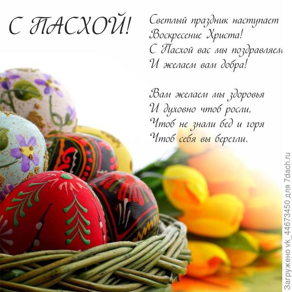 Пусть этот праздник Светлой Пасхи Согреет миром и добром. Пусть будут все всегда здоровы, А остальное всё пройдем.