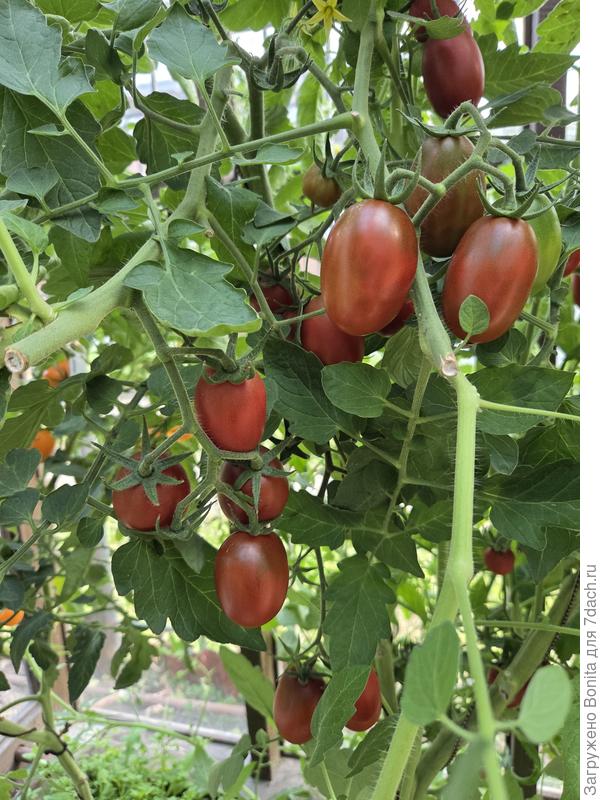 , но терерь уже третий сезон этот томат у меня в теплице. Урожайный, вкусный, беспроблемный и устойчивый к болячкам. На фото кисти 31 августа в теплице. Вся листва здоровая, много цветков и молодых завязей. Дорастает до потолка теплицы. Еще порадует урожаем до конца сентября.