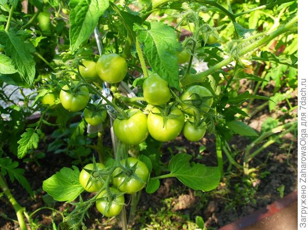 Высота растений была большой, примерно в два раза больше характерной для сорта. Плодов было очень много. И поспели все на растениях.