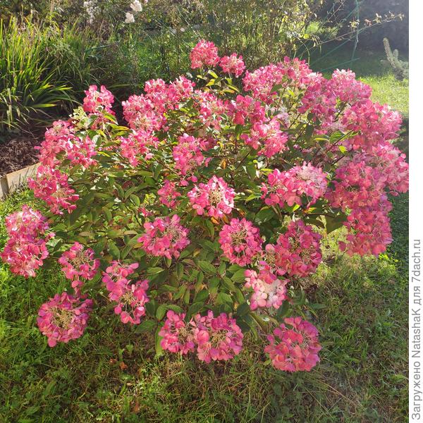 Инна, с метельчатыми проблем нет, если яму правильно подготовить, т.е при посадке добавить кислого, верхового торфа. Ещё добавляю хвою. Потом весной мульчирую опять же или хвоей или измельчёнными в шредере ветками. Зимует без укрытия. Кстати, говорят что им нужна полутень, но Мишка себя великолепно чувствует на солнце.