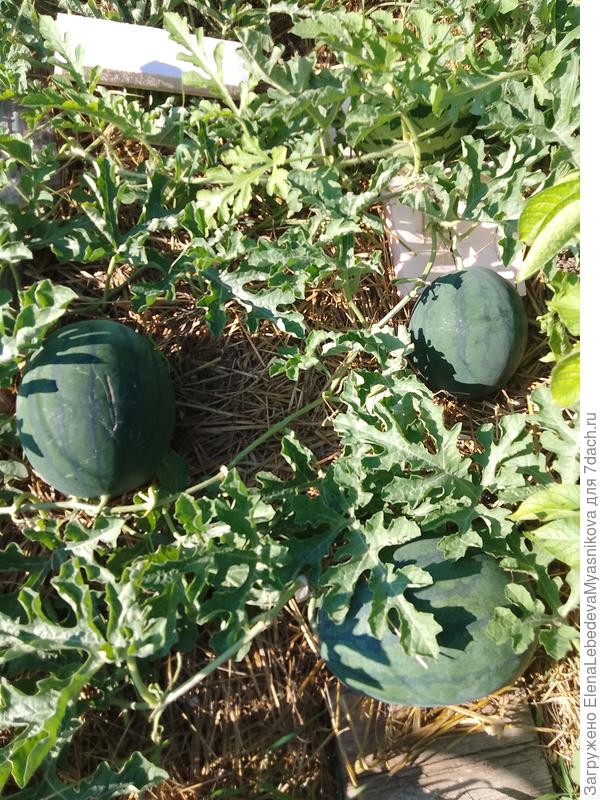 А у меня в этом году совсем плохо завязались арбузы. На всей грядке всего 4 штуки. Но хоть дыньки пытаются порадовать, причем кучненько так))))) хотя на листьях появилась какая-то пятнистость…