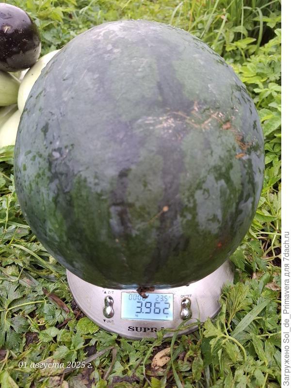 Когда обнаружила на одном арбузике, Шуга деликата, желтый бочок и сухой усик, руки так и чесались его сорвать. Я ж не в курсе сколько он должен вылёживаться.
