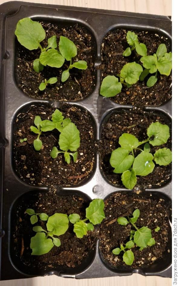 Но прошу аккуратнее — семядоли открылись и должна заработать корневая система. Что им есть, какое питание на ватных дисках? У вас полумахровые сорта и производитель не просто так написал «комнатные растения», на самом деле они скорее горшковые. Хоть и не долговечные (мои подобные почти все ушли после первой зимовки в ОГ, оставшиеся после второй зимы), но подразумевают настоящую технологию подкормок с поливом.