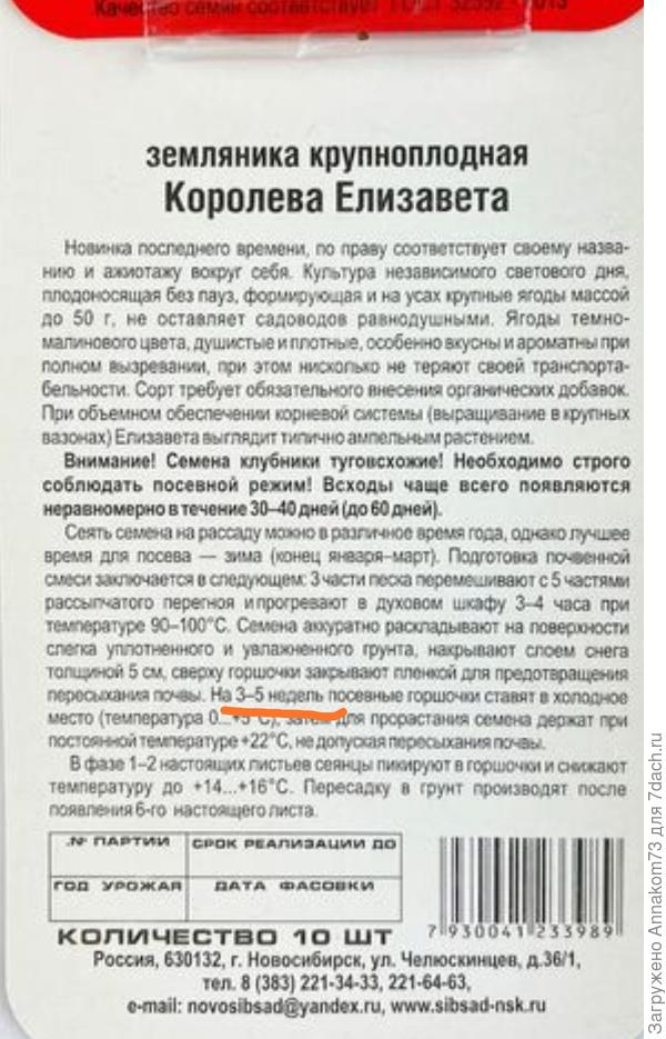 Очень удивила что стратификация 3-5 недель. На остальных пакетах что ч сажала (гигантелла, зефир, и проч.) было 3-5 дней. Неужели полтора месяца в холодильнике держать надо. Сгниет же всё на корню.