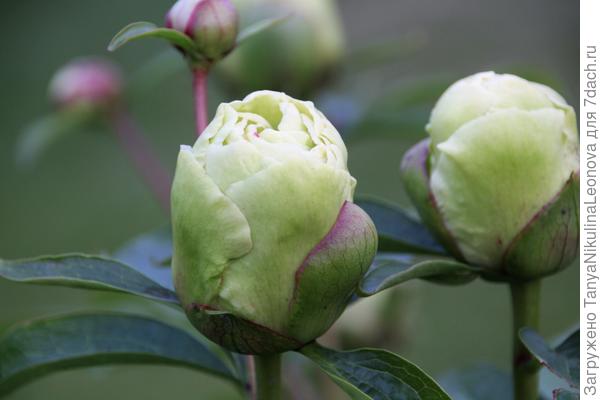 Сорт относится к среднеранним. У меня в саду он зацветает сразу после древовидных пионов, в первых числах июня. С самого начала он привлекает внимание даже своими бутонами. Они зеленоватые, с красным краем.