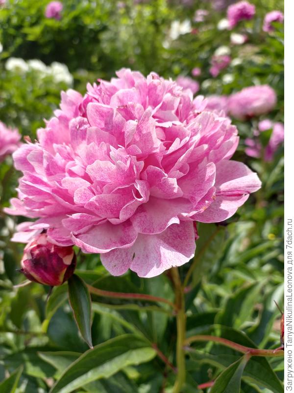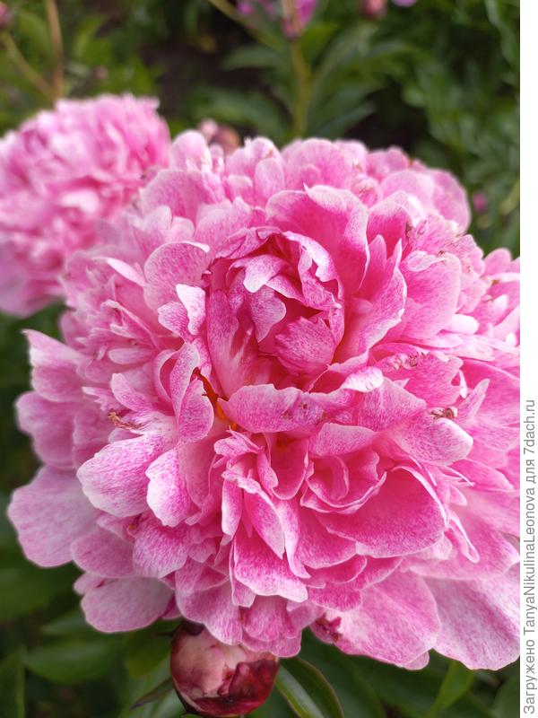 Помните, в прошлом году жаловалась я на майские заморозки — не дали они мне полюбоваться на некоторые сорта? И хотя в 2025 году опять погода в мае сошла с ума, всё же 'Carnation Bouque', 'Карнейшен букет', Сейдл 1996) бутоны распустил и поделился своей красотой. Форма цветка довольно необычна для пиона: лепестки собраны в форме гвоздики, кстати, и в переводе название звучит как 'Букет гвоздик'. Цвет — тёплый розовый. Форма цветка в роспуске — абсолютный шарик. Этот пион однозначно запоминается своей необычностью и красотой!