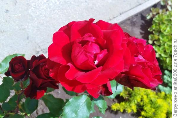 Эту розу считаю визитной карточкой своего сада, ее сияющий цвет виден издалека.