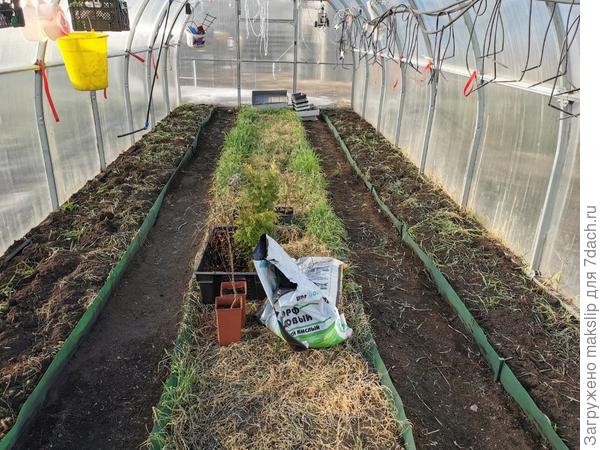 Выращивать в теплице буду и в этом году огурцы (на пасленовые — табу на 3-4 года из-за кладоспориоза), грунт поменять не смогу. Так что остаются только обработки. Да, каркас у теплицы сделан из деревянных брусков, покрашенных специальной краской.