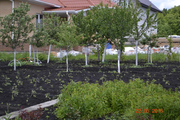 У Вас молодой сад… Давно заложили? Сколько Вашим деревьям лет? Такие стройные стоят, стволики тонкие, белые, красиво.