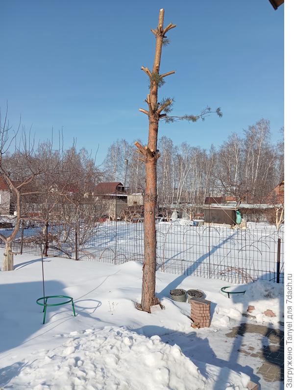 Если посадить небольшую сосну, то она скоро подрастет на замену той. Да и вообще я теперь не хочу иметь высокую сосну на участке.