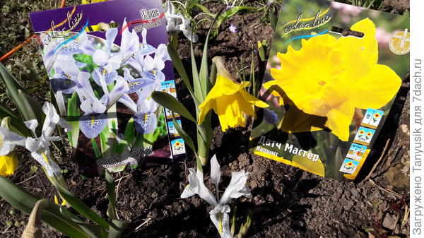 Но легенда не была бы легендой, если бы не было счастливого конца с превращением людей в цветы. Так и случилось! Ранней весной, на том месте, где происходил знатный пикник, выросли трубчатые нарциссы 'Голландский Мастер', а вокруг них замечательные сетчатые ирисы.