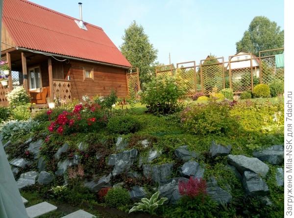 Нет, здесь мне вечнозеленые не нужны. Мне достаточно здесь трех гортензий и чубушника из кустарников. А летом разрастаются здесь многолетники. Дело в том, что в этом месте, во-первых, снег с крыши сползает во время оттепели, а во-вторых, он тут долго не тает, т.к.это теневая сторона. И переживать за «елочки» (а других вечнозеленых в Сибири я не знаю) всю зиму, выстояли они или об ломались, я не хочу. У меня достаточно хвойных в хвойным уголке напротив, через дорожку.