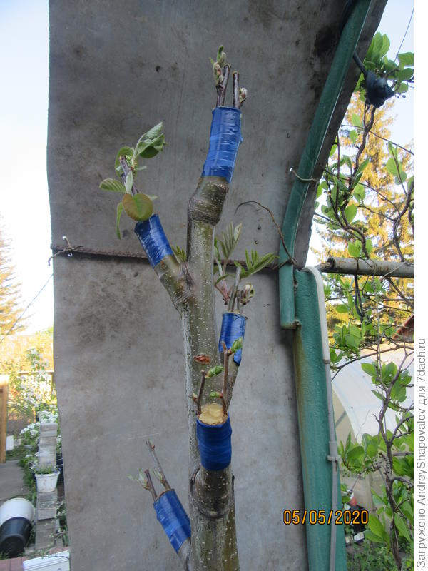 В марте заготовила черенки яблонь и груш (рекомендуют срезать с южной стороны дерева побеги прошлого года с минимум 2-3 почками). Положила их в холодильник во фруктовое отделение. Прививала в конце апреля. В это время в нашем регионе идет активное сокодвижение у яблонь и груш.