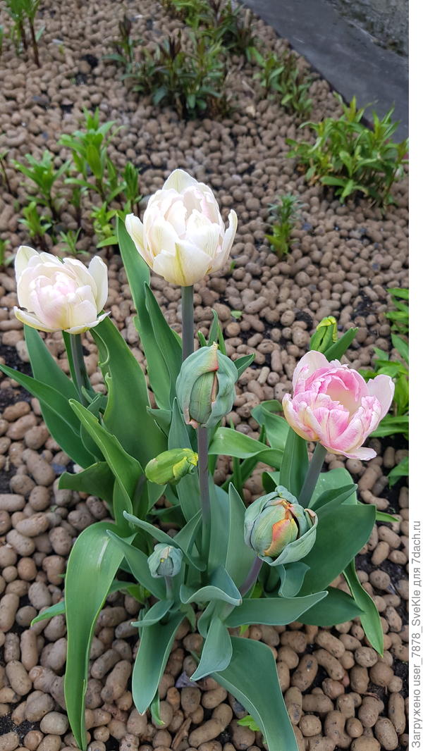 Тюльпаны — они такие! Я купила, посадила в одном месте. Плохо. Пересадила. Поняла, что в тени от забора — плохой вариант. Пересадила крупные луковицы на одно место, мелкие — в другое, на зады. Листья торчат во всех четырёх местах! А вроде пастернак дёргала, глубоко копала, гнездо луковок выкопала.