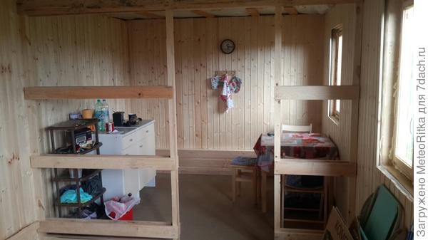 С покупкой готовой бытовки я уже обжигался — у нас много мелких фирм, продающих готовые бытовки. И когда купили землю, то обратился в одну такую. Сами привезли и бытовку и блоки под нее. Сами установили. Но когда устанавливали, то я заглянул под бытовку — она по низу была обтянута каким-то материалом, типа пленки, точно не понял что это было. Т.к. вид снизу был как бы секциями, то в каждой такой секции болталось примерно по ведру воды. Получается, что эта бытовка была во время постройки на улице и полностью залита дождями. А когда заглянул внутрь бытовки, то увидел щелястый пол, собранный из обрезков досок. Короче отказался я от этой бытовки и потребовал деньги назад. Еще и с этим пришлось повоевать. Нынешнюю бытовку нам строили уже непосредственно на участке.