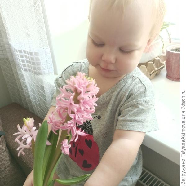Поэтому сейчас, заранее предчувствуя расстройство дочери, я решила немного подстраховаться. К 8 марта в супермаркете выставили на продажу живые цветы. Дочь как зачарованная остановилась возле нераспустившихся гиацинтов. И я решила купить ей один.