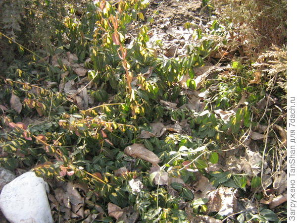 Абсолютно неприхотливый! Зимует под упавшими листьями. В прошлом сезоне стал выбрасывать вертикальные длинные побеги. Очень оригинальное растение — бересклет японский! Так он у меня выглядит сейчас, в феврале.
