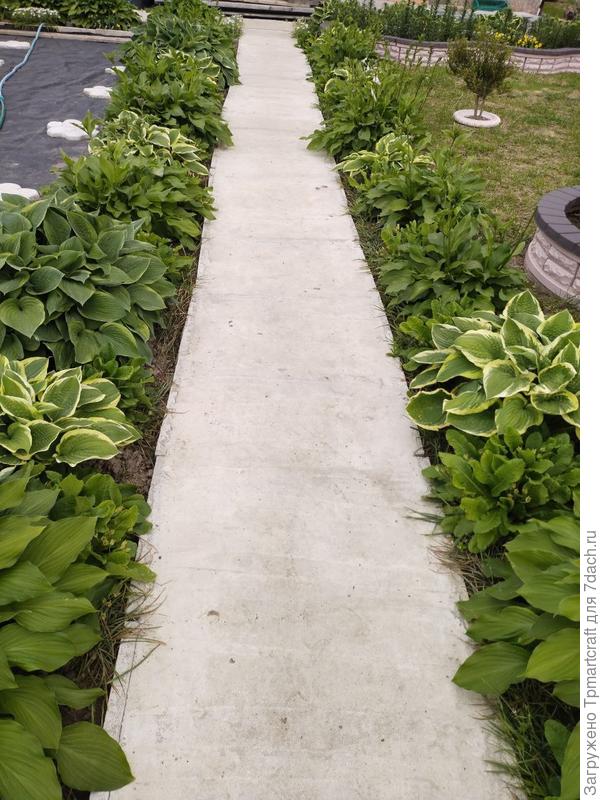 Очень люблю на своем участке прокладывать бетонные дорожки, на которые впоследствии уложу тротуарную плитку. Но каждая дорожка для меня является незавершенной, если вдоль нее не идет какой-нибудь живой бордюрчик или клумбовое ограждение.))) Всегда считала, что идеальным «зеленым» вариантом обрамления для меня выступает такое растение, как хоста. Но рабатки с ней приходится все равно полоть и рыхлить, чтобы они смотрелись более-менее ухоженными, пока хосты не разрастутся. А также высаживать на них однолетники, чтобы заполнить пустоты)))
