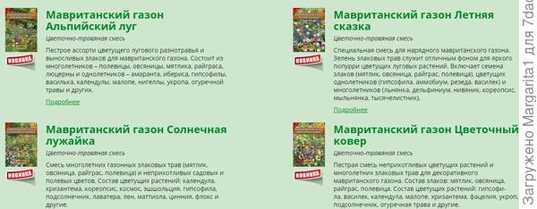 Большой ассортимент различных растений и готовых смесей для создания пестрой лужайки вы можете найти в нашем каталоге, объединяющем предложения различных садовых интернет-магазинов. Смотреть подборку растений для цветущего газона.