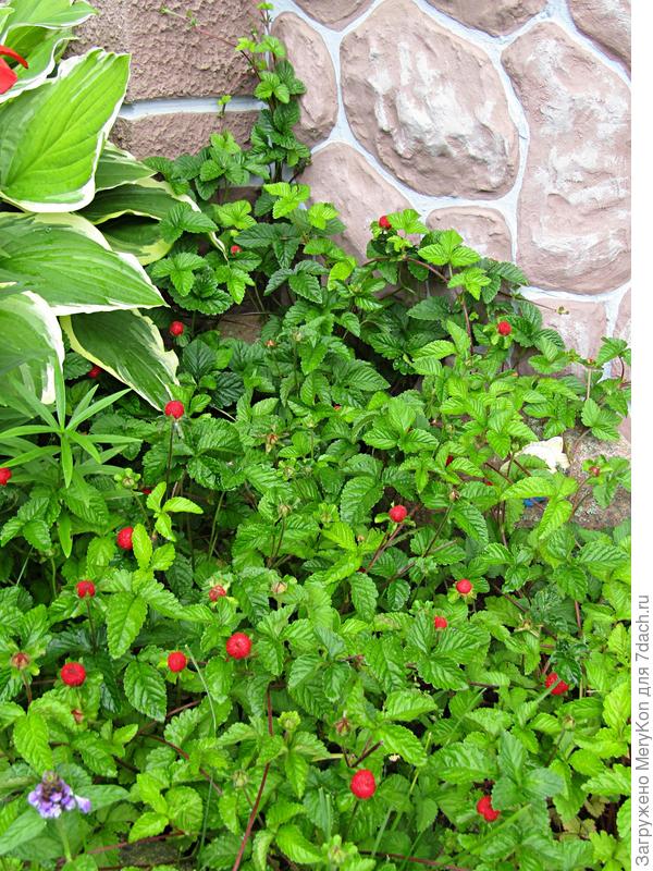 Быстро разрастаясь, дюшенея поможет скрыть неприглядные садовые элементы