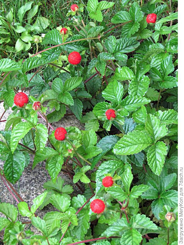 Дюшенея индийская, она же фрагария индийская и индийская земляника (Duchesnea indica, syn. Fragaria indica), родом из Индии, Китая, Японии. Название рода Duchesnea происходит от имени известного французского ботаника Антуана Николя Дюшена (Antoine Nicolas Duchesne). В этот род включено всего 6 вечнозеленых многолетников. Зимостойкость (согласно данным USDA) соответствует зонам 5-11.
