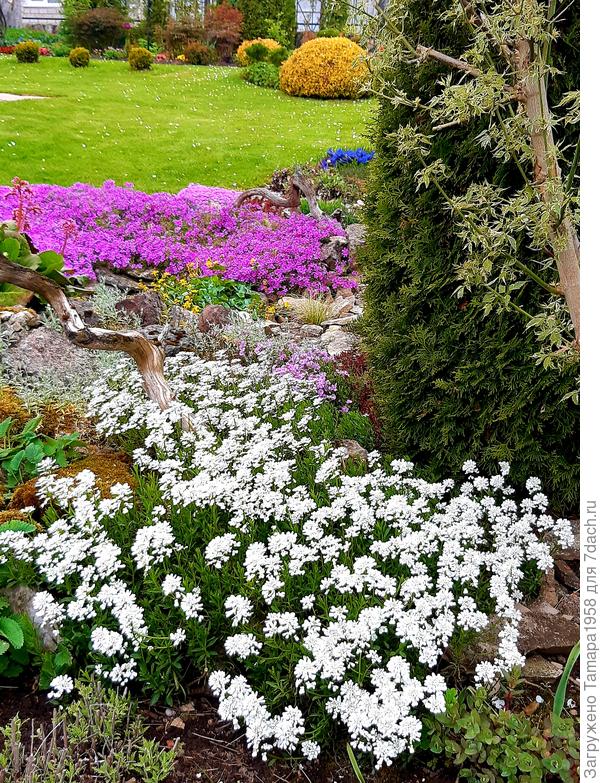 Иберис вечнозеленый с хвойными породами. Фото автора