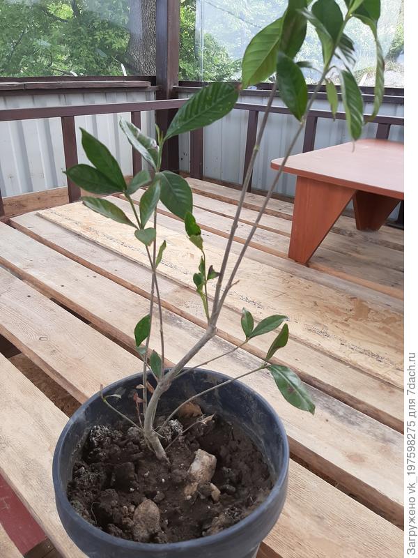 Гардения тоже еле жива в своём родном контейнере. Но земля «никитская» мне совершенно не нравится — тяжёлая, растению, видимо, не подходит.