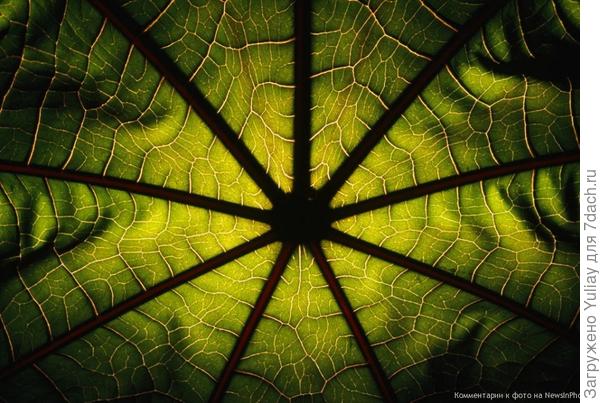 Паутина прожилок пронизывает весь лист клещевины, растущей в Венгрии.