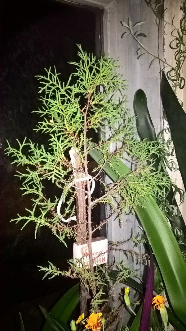 Побеги жесткие, хвоя чешуйчатая, зелено-голубая; морозостоек в Средней полосе России. Можно выращивать свисающим на штамбе.