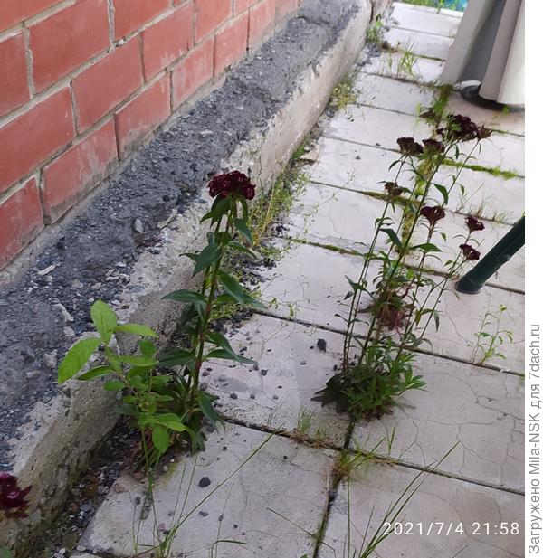 Благо, у меня руки не дошли выдрать проростки. Когда они подросли, у меня закралось «смутное сомнение», что они похожи на ростки гвоздики. Но я сомневалась, что ЭТО могло вырасти в таком месте. Ну а когда ОНО зацвело, то сомнения сменились удивлением