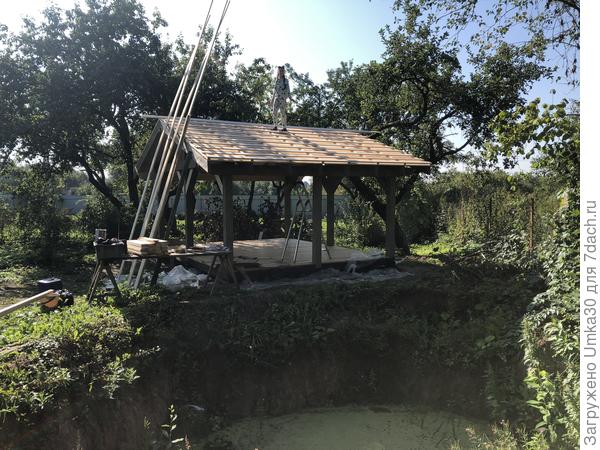 Волшебная, непонятная «лужа» — яма 3,5 метра в диаметре и 70-80 см глубиной, где постоянно стоит вода. Будем ли мы ее засыпать или делать из нее более глубокий и большой водоем — тоже не дает нам покоя, но это потом. Главное для нас всё же это отрывная точка, строительство в ближайшее время бани и беседки)).