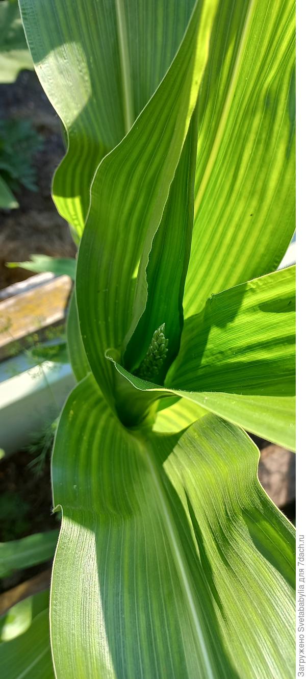 Пару недель назад, а может 3-4, я ее высадила, а т.к. я мало езжу в родительский сад (не каждую неделю, скажем так), то кукуруза росла в «новой квартирке со всеми удобствами», читайте с капельным поливом. То сегодня я увидела бодрую цветущую кукуркзку. Напомним: Урал, конец июня.