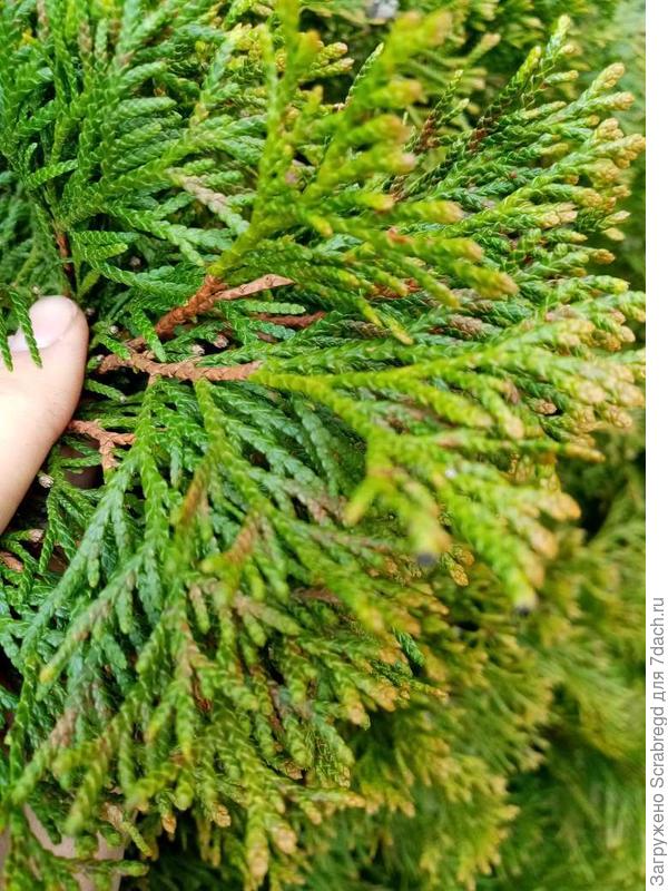 Подскажите, что с туями? Начали усыхать веточки. Сажали их осенью прошлой, грунт готовили для туй, копали траншею. Весной делала обрезку, недавно поливала хвойным удобрением… Уже конец мая, не должно быть солнечных ожогов, и подкормки должно...